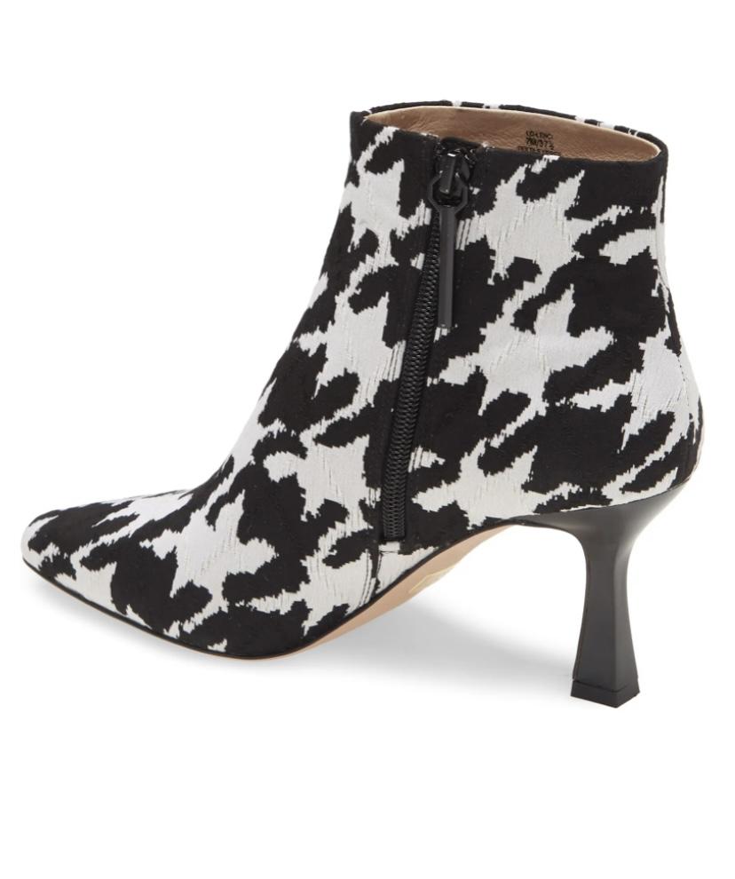 Louise et Cie Lenci Black White Kitten Heel Pointed Toe Dress Ankle Boots