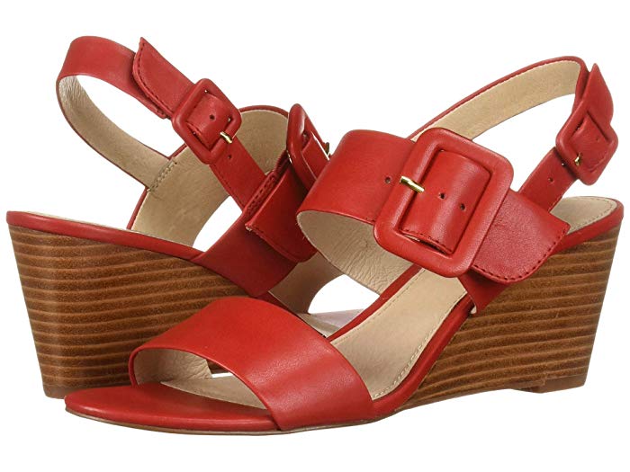 Go with your gut and step out in the Louise et Cie Putnam wedges. Heeled sandals feature a leather upper. Ankle strap with buckle closure. Open-toe silhouette. Leather lining. Lightly-padded, fixed footbed. Stacked wedge heel. Synthetic outsole. Imported. Measurements: Heel Height: 3 in Weight: 9.2 oz Product measurements were taken using size 8, width M. Please note that measurements may vary by size. Weight of footwear is based on a single item, not a pair.