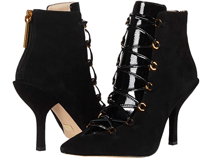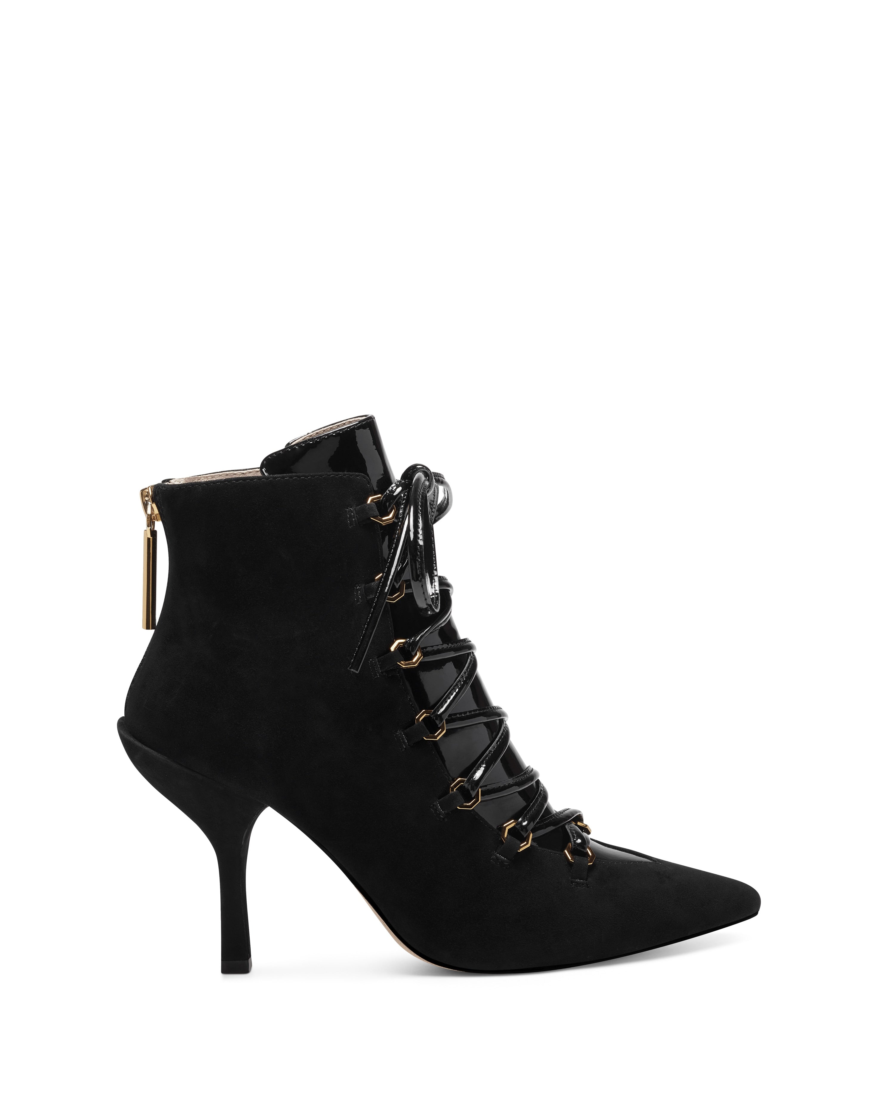 Louise et Cie Vanida Black Suede Leather Lace-Up Pointed Toe Dress Ankle Boots