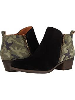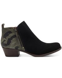 Lucky Brand Basel Black Camo Almond Toe Ankle Block Low Heel Zipper Boots