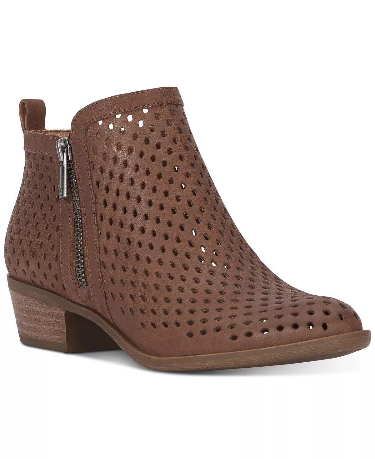Lucky Brand Basel3 Sesame suede Side Zip Perforated Leather Block Heel Booties