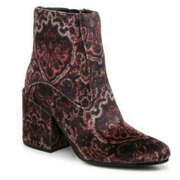 Lucky Brand Rainns Block Heel Black Multi Velvet Pointed Toe Fashion Ankle Boots