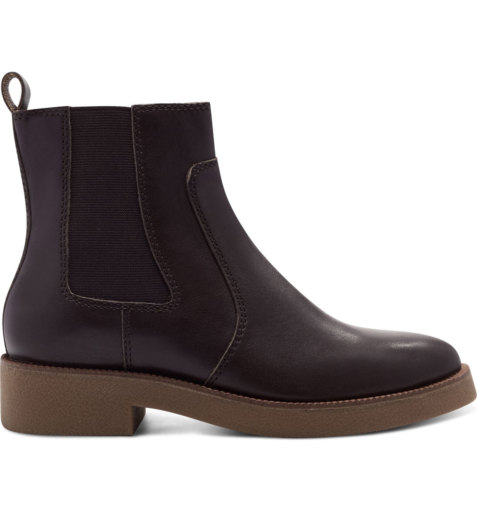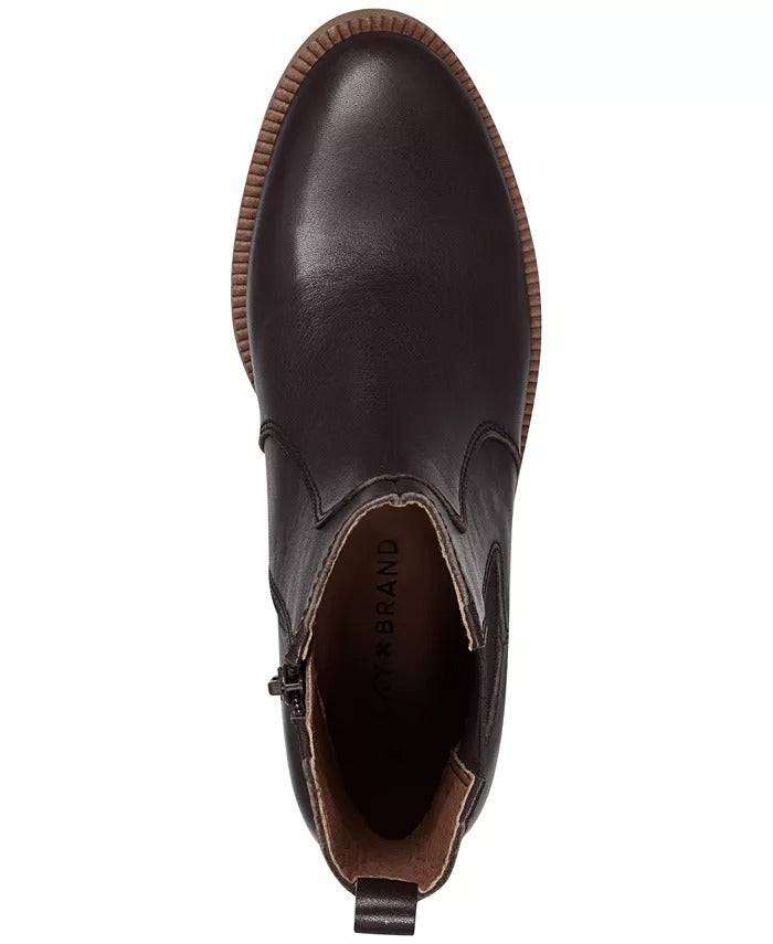 Lucky Brand Ressy Chocolate Leather Chelsea Style Block Low Heel Ankle Booties