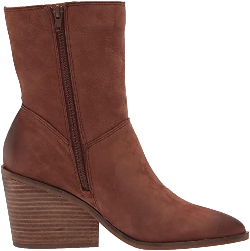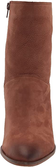 - Almond-toe wedge booties with inner ankle zipper closure.