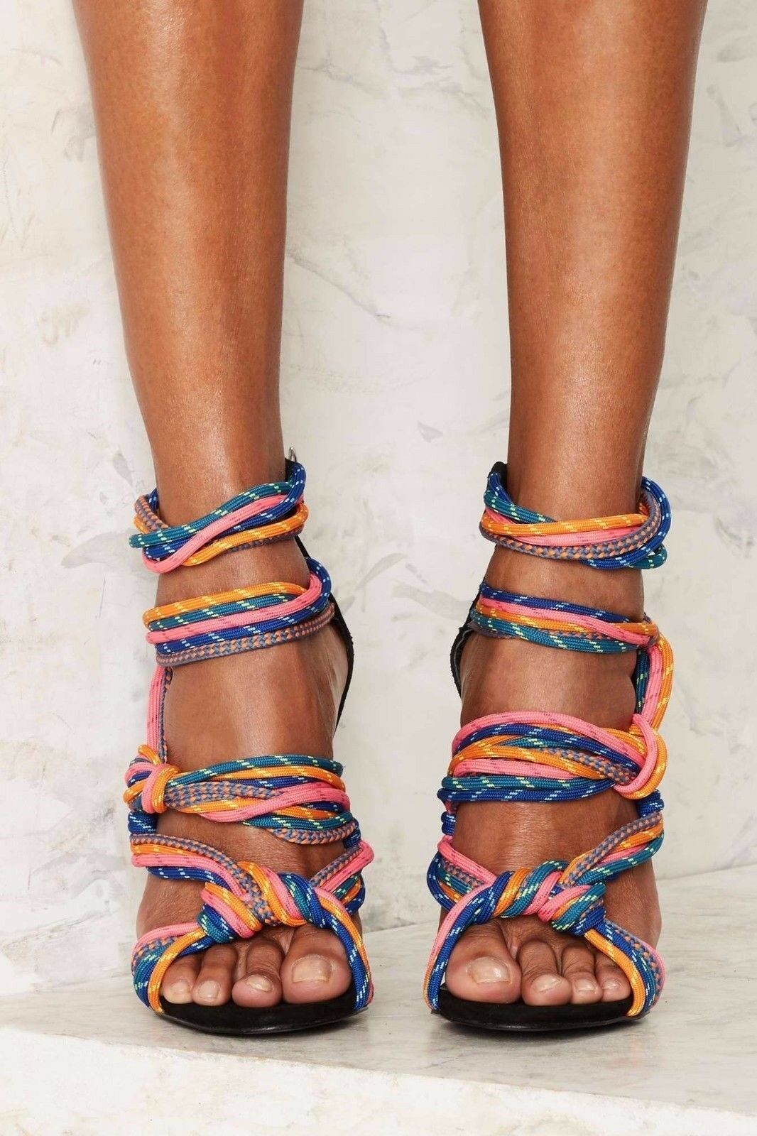 Lust For Life Phantasy Multi Color Suede bungees Strappy Stilleto Dress Sandals