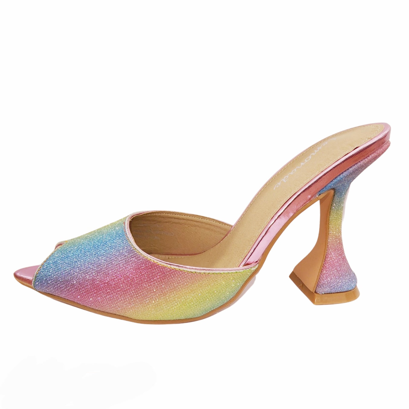 Luxemoda Jetset Rainbow Glitter Peep Toe Pyramid High Heel Fashion Sandals