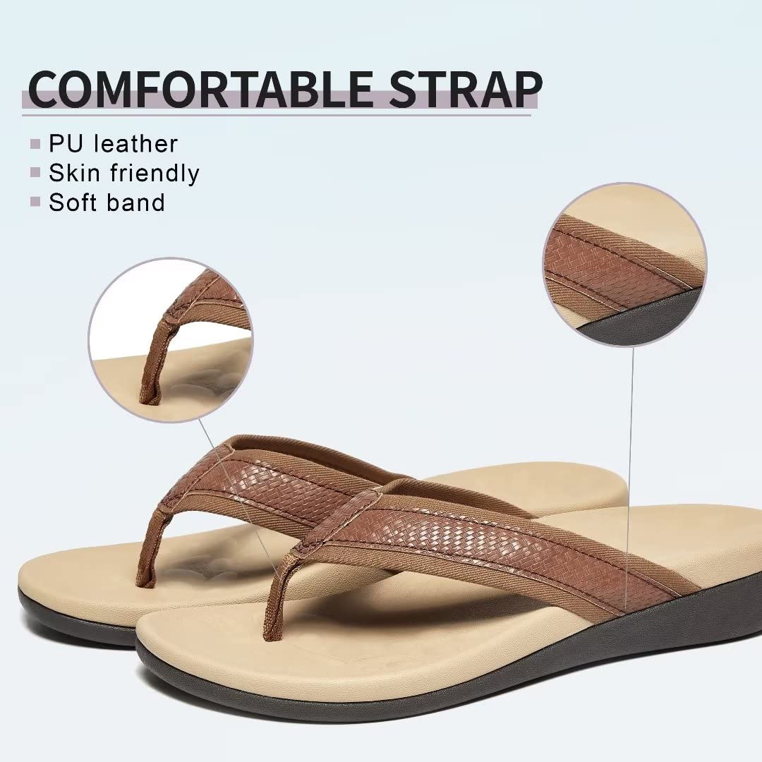 MEGNYA Orthotic Flip Flops Women Coffee Slip On Open Toe Casual Sandals