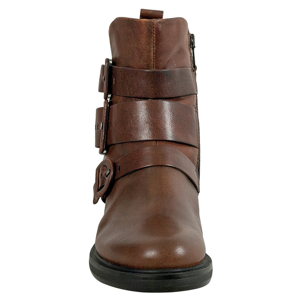 Miz Mooz Casper Women's Ankle Boot Rounded Toe Buckle Brown Leather Boots