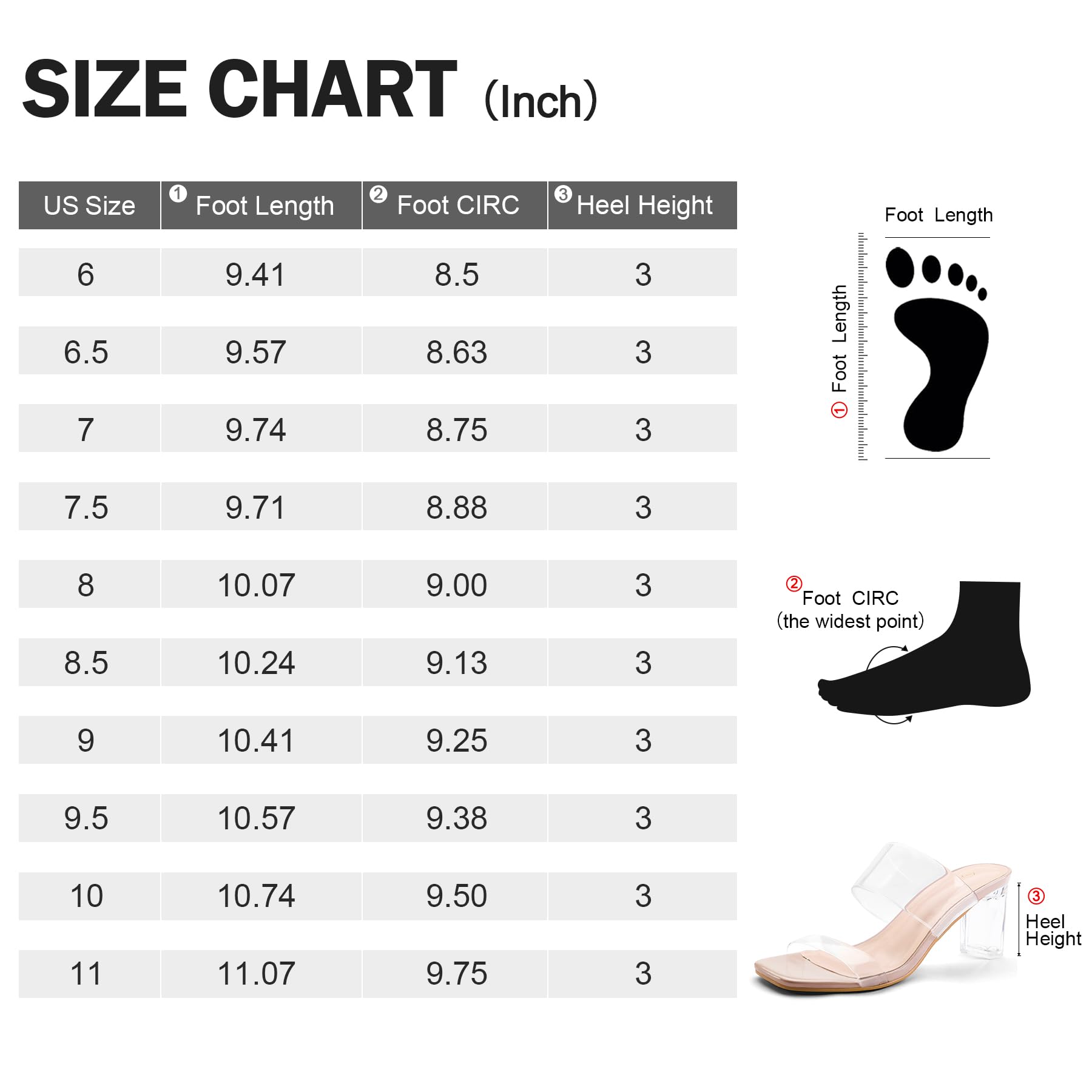 - These square-toe heel sandals for women have a heel height of approximately 3", offering a comfortable option for all-day wear. The platform height measures around 0.25", providing a balanced and confident stride.
