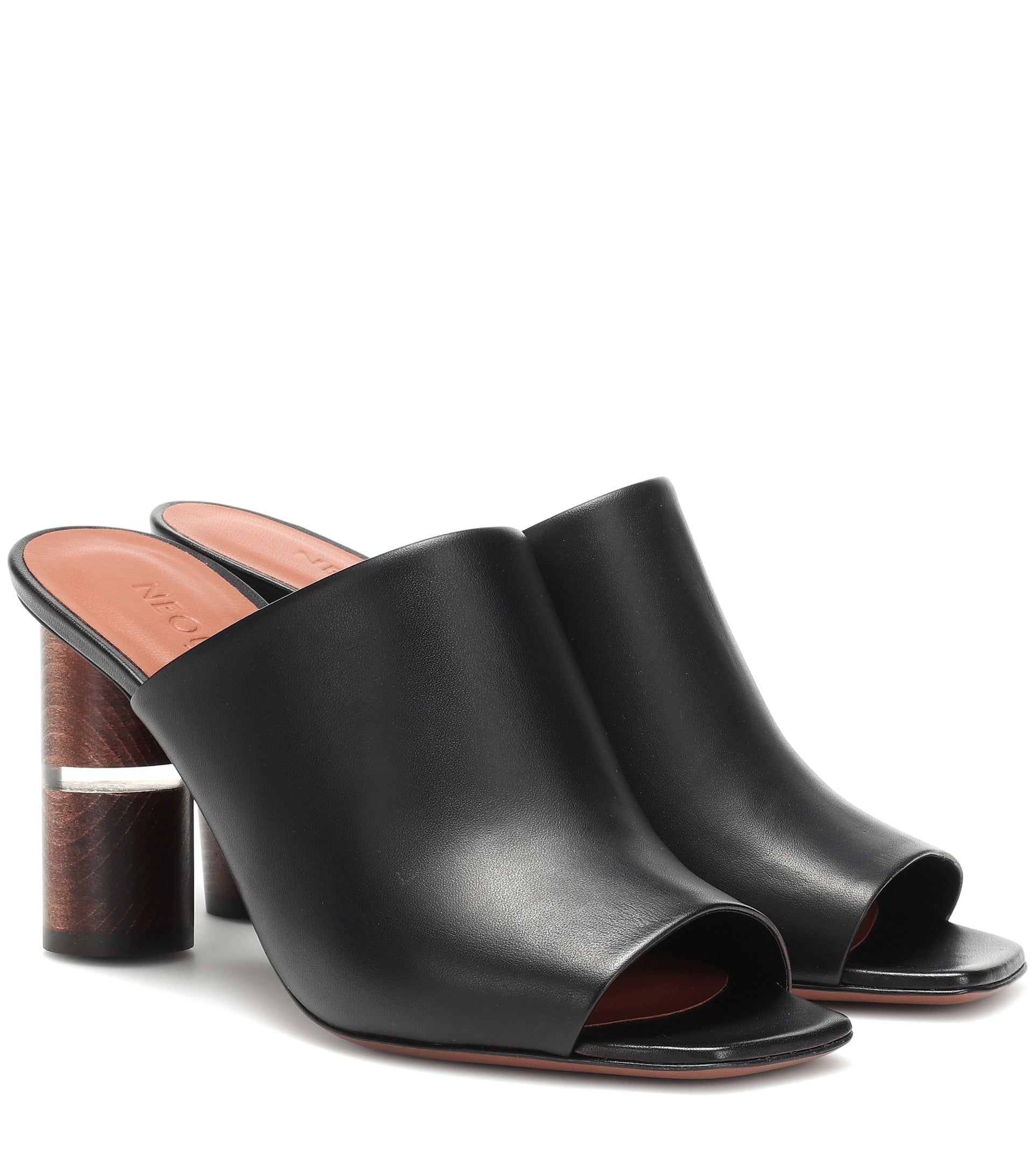 Neous Women's Black Cerato Leather Sandals High Block Heel Open Toe Mule Pumps