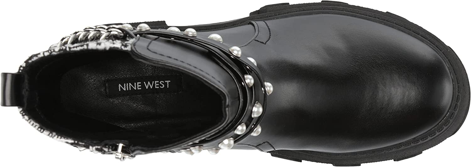 Nine West Cearlz3 Black Multi Zip Closure Chain Detailed Leather Ankle Boots