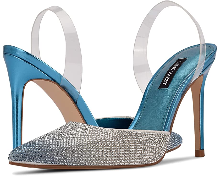 Nine West Fabry 5 Blue Multi Pointed Toe Slip On Stiletto Heel Formal Dress Pump