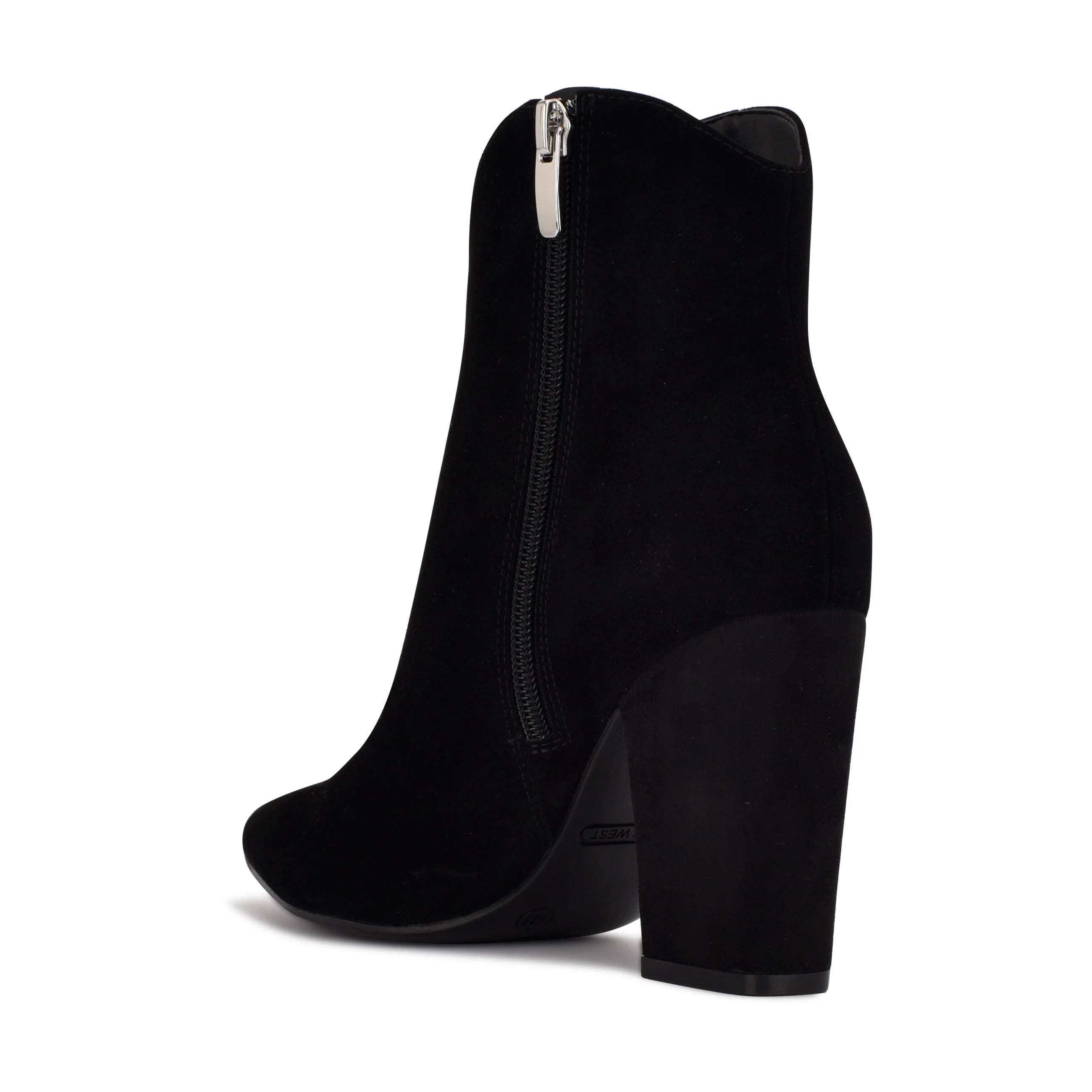 The Ghost bootie is the perfect wardrobe essential. Featuring high block heel, pointy toe and V-shaped cut out at the ankle.