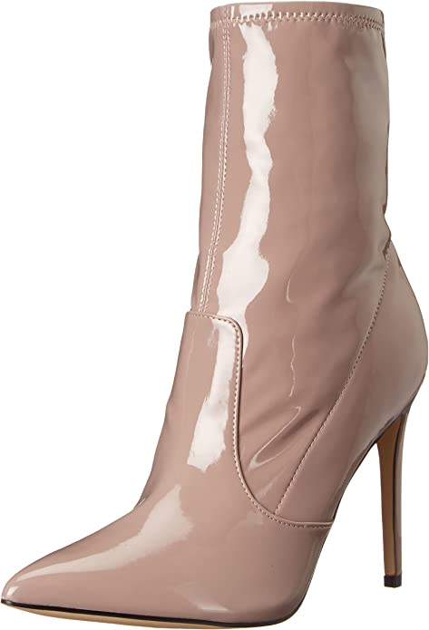 Nine West Jody3 Pink680 Mauve Patent Stiletto Heel Pointy Toe Pull On Ankle Boot