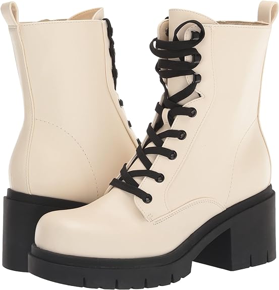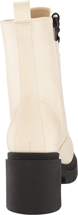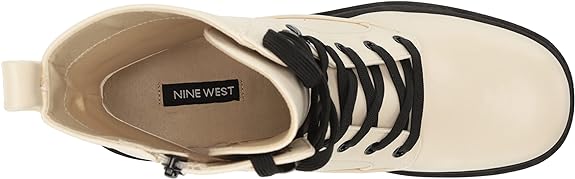 Nine West Juna3 Ivory Lace Up Chunky Block Heel Rounded Toe Combat Ankle Boots