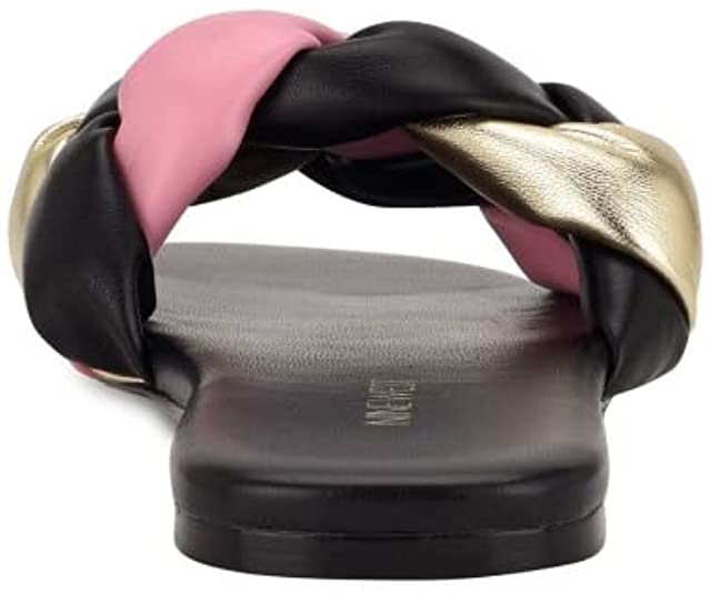 Nine West Lula 3 Warm Blush Faux Leather Open Rounded Toe Slide Braided Sandals