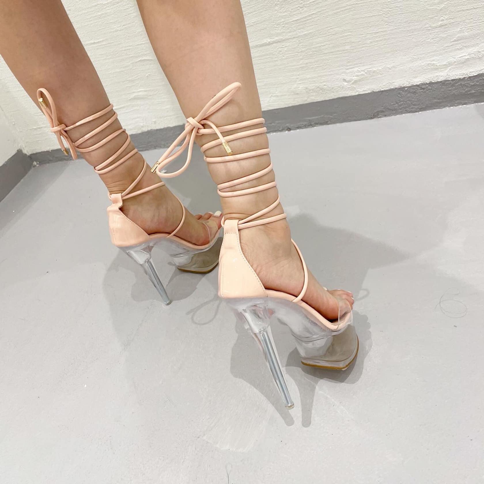 Clear Heels Sandals for Woman Transparent Platform Cross Ankle Strap High Heels Open Toe Stilettos Party Club Shoes Style: Fashion& Cute Toe: Peep Toe Closure: Lace-up Peep Toe Open toe sandals are essential for sexy sandals.