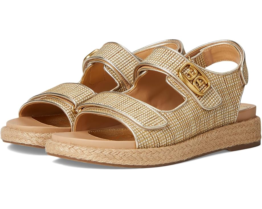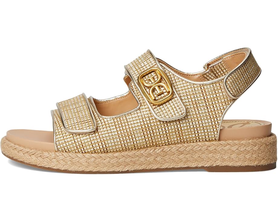 Sam Edelman Arlo Linen Open Toe Velcro Straps Raffia Sport Heeled Light Sandals