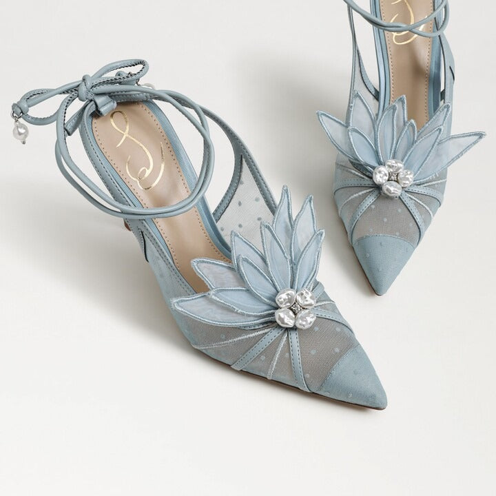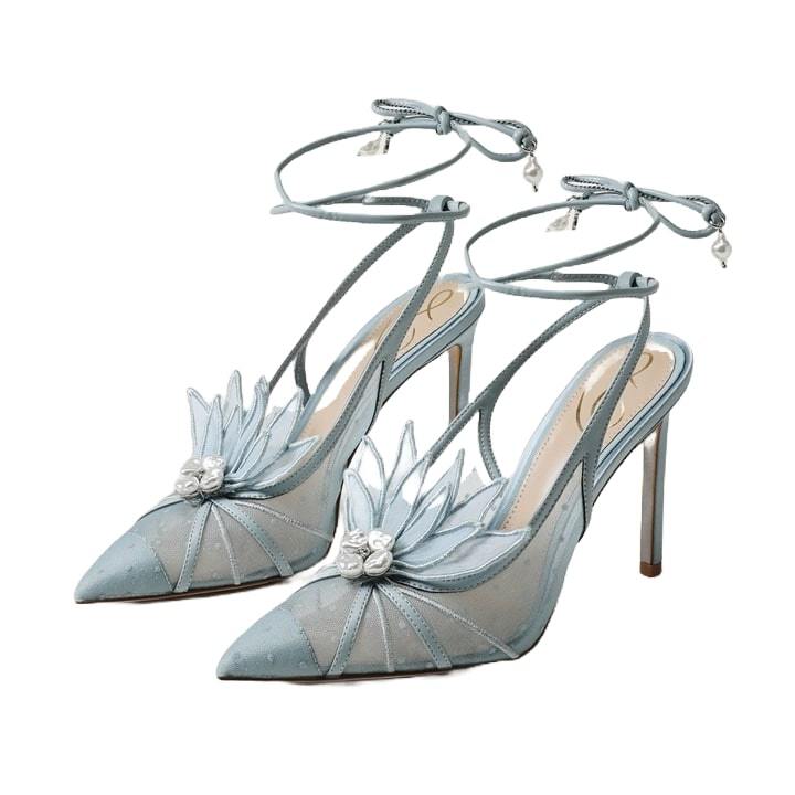 Sam Edelman Aura Robin Egg Blue Tie Up Pointed Toe Stiletto Heeled Dress Sandals