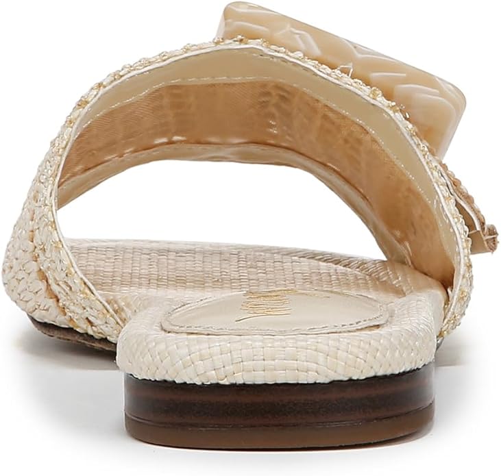 The Bambi slide sandals boast a raffia upper complemented by an oversized resin buckle. Play with proportion and pack a punch.