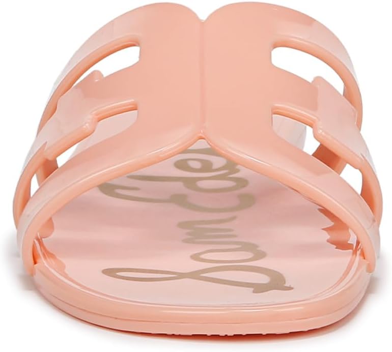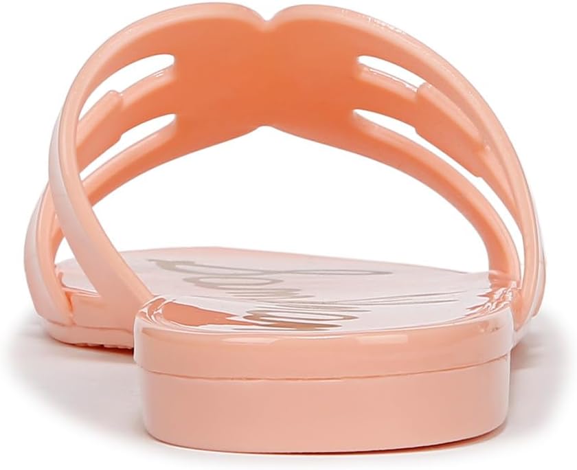 Sam Edelman Bay Pink Rosette Round Open Toe Slip On Leather Strap Slide Sandals