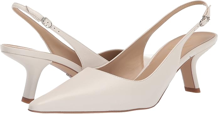 Sam Edelman Bianka White Leather Pointed Toe Kitten Heel Slip On Fashion Pumps