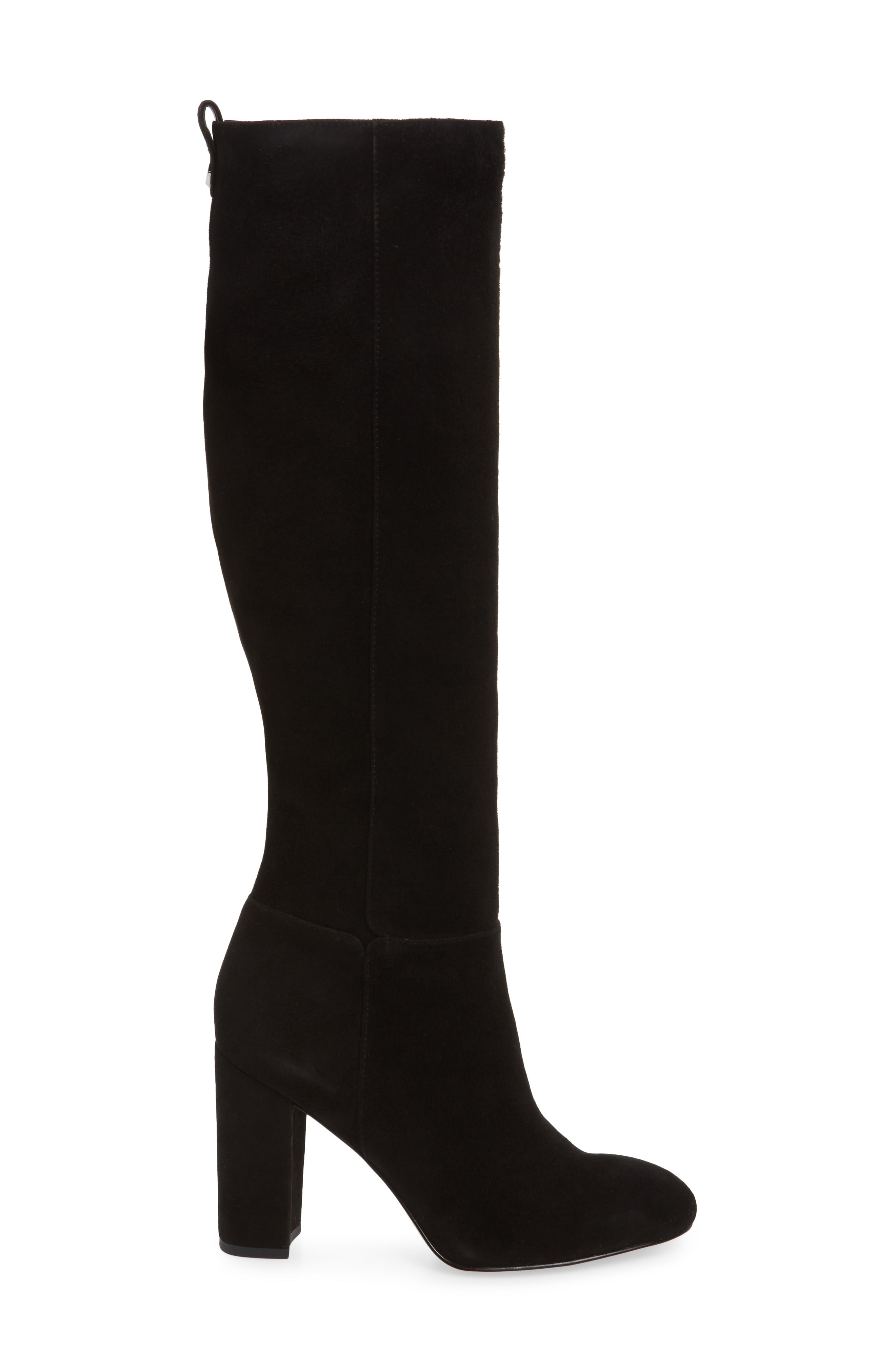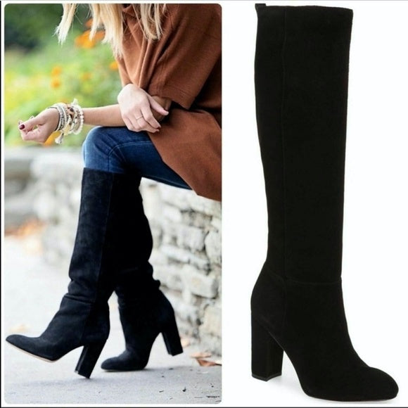 Sam Edelman Caprice Black Suede Knee-High Block Heel Round Toe Dress Boots
