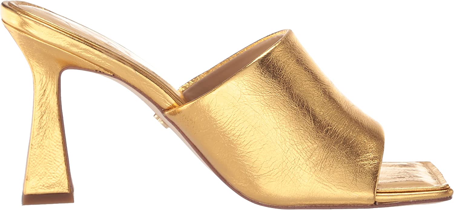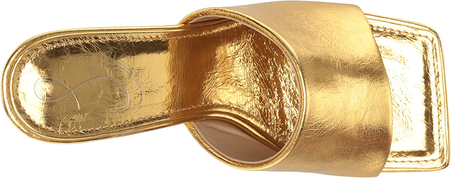 Sam Edelman Carmen Sun Gold Leather Spool Heel Open Squared Toe Heeled Sandals