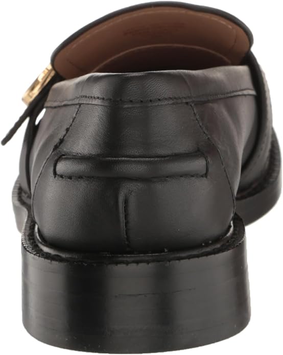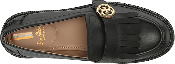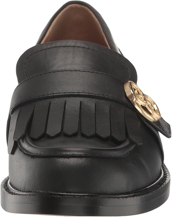 Sam Edelman Charlie Black Leather Slip On Stacked Heel Rounded Toe Loafers