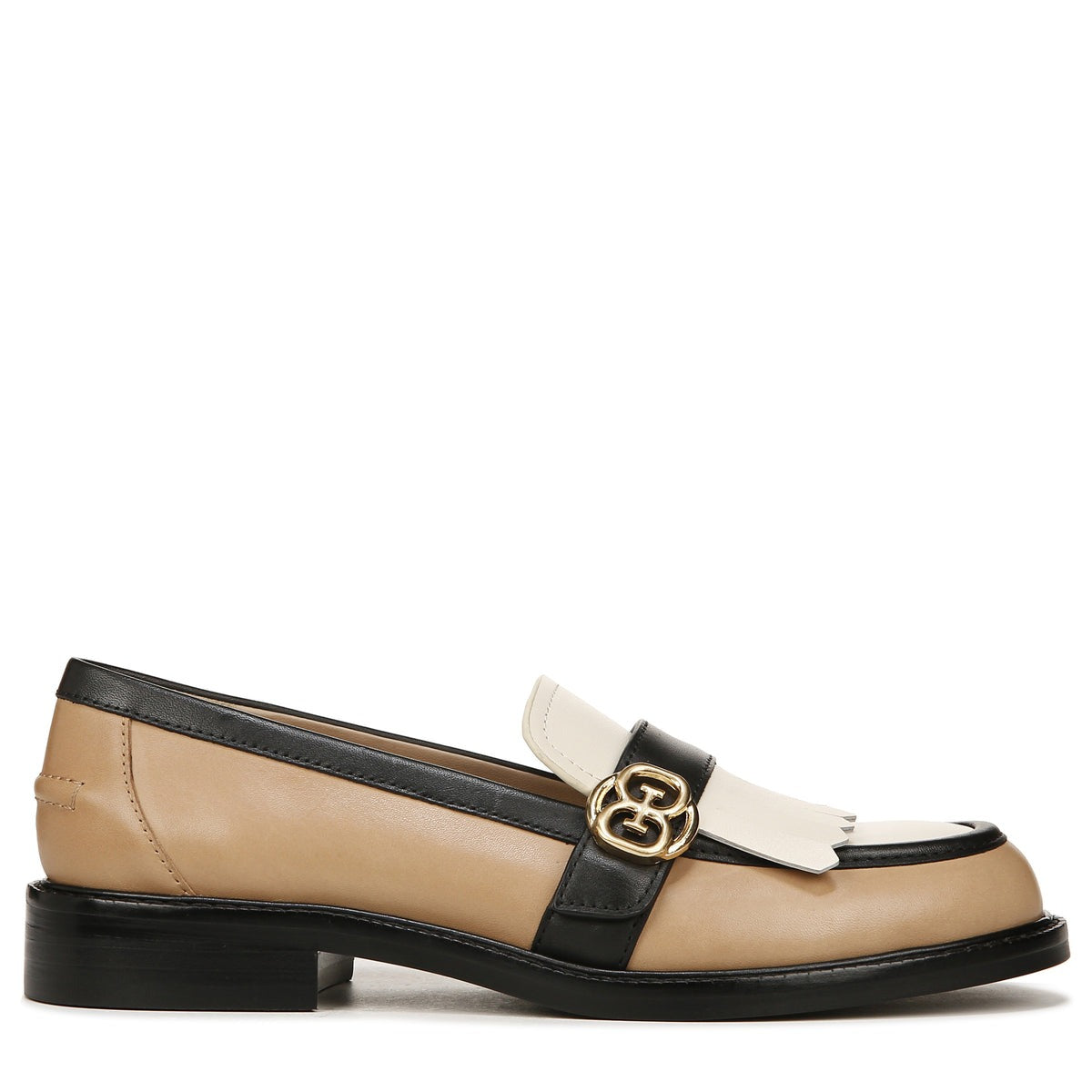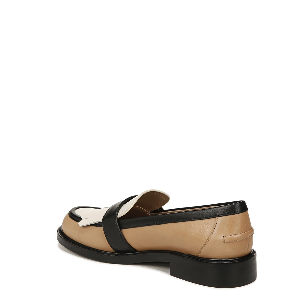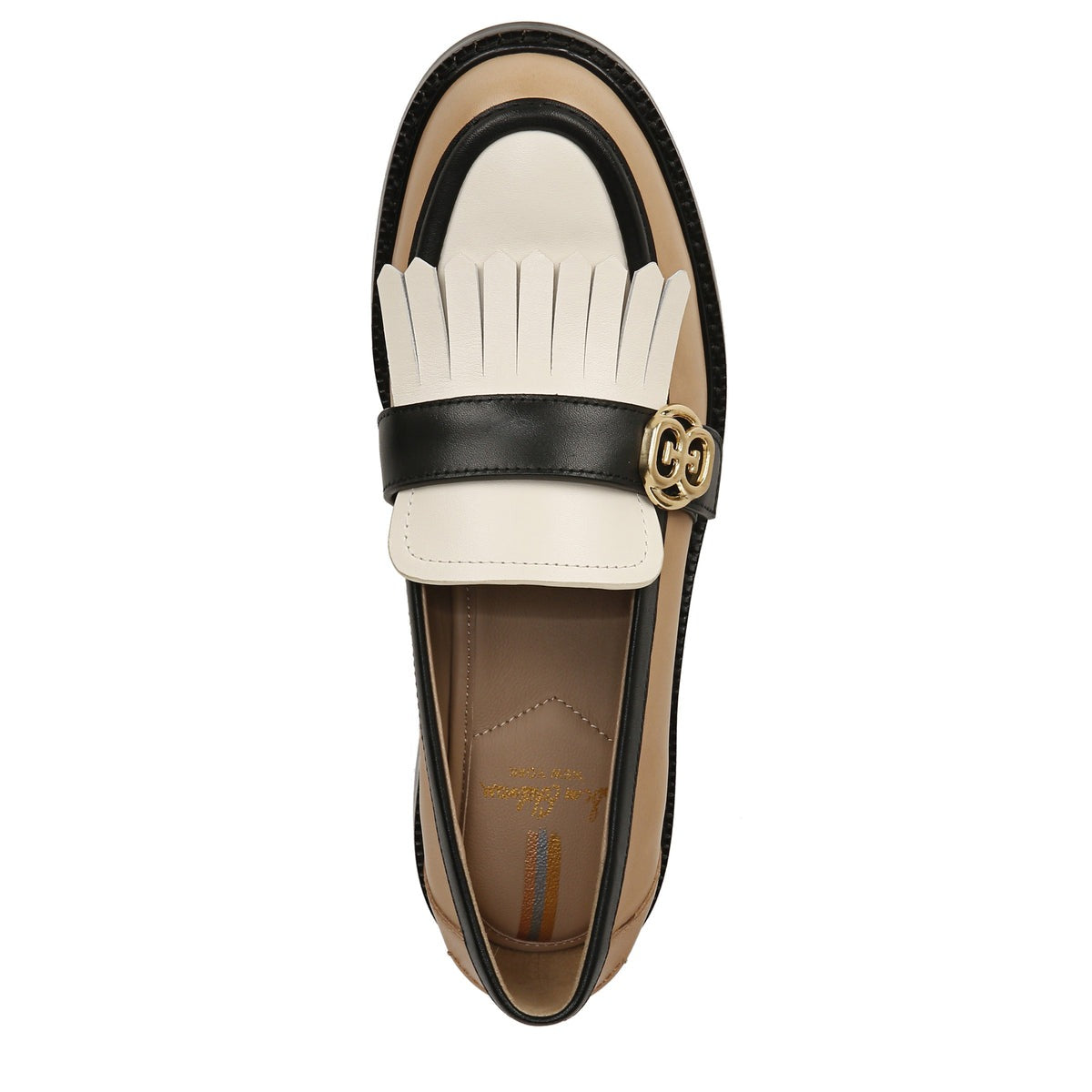 Sam Edelman Charlie Luxe Tan/Black/Modern Ivory Slip On Stacked Heel Loafers