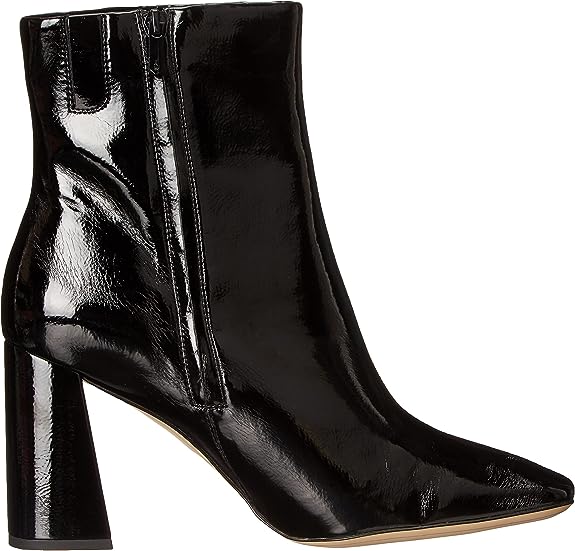 Sam Edelman Codie Black Patent Side Zipper Squared Toe Block Heel Fashion Boots