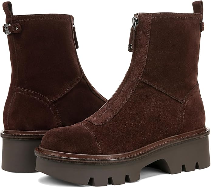 Sam Edelman Cooper Cafe Noir Leather Lug Sole Zipper Fashion Ankle Booties