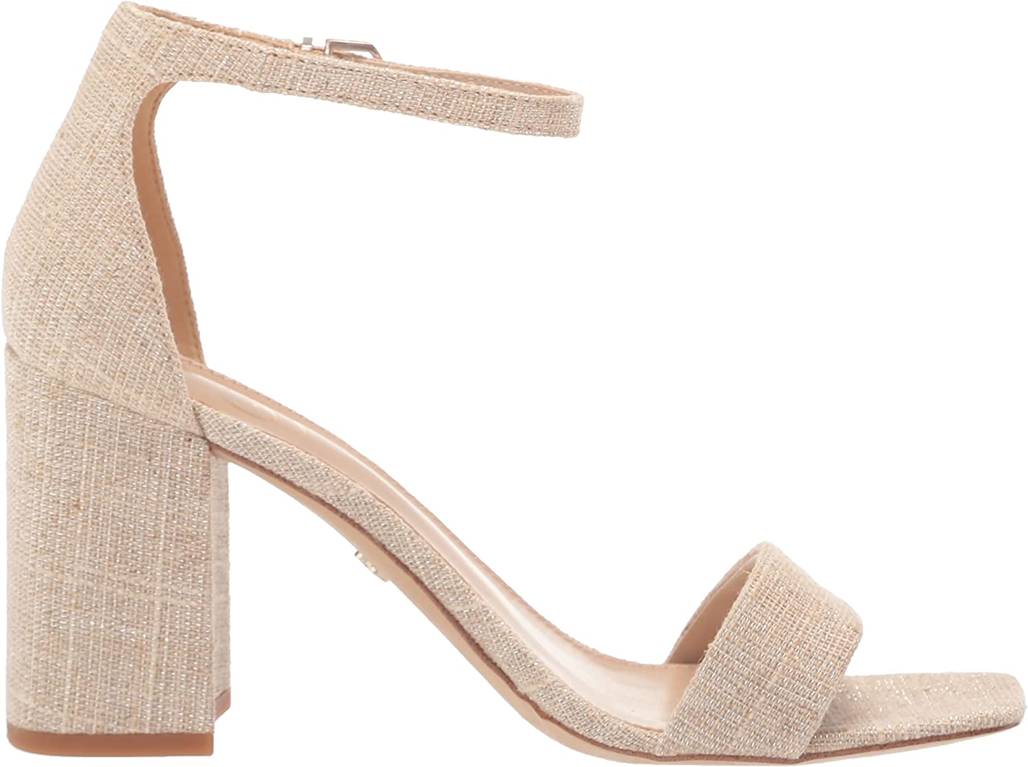Sam Edelman Daniella Natural Glitter Open Toe Ankle Strap Block Heeled Sandals