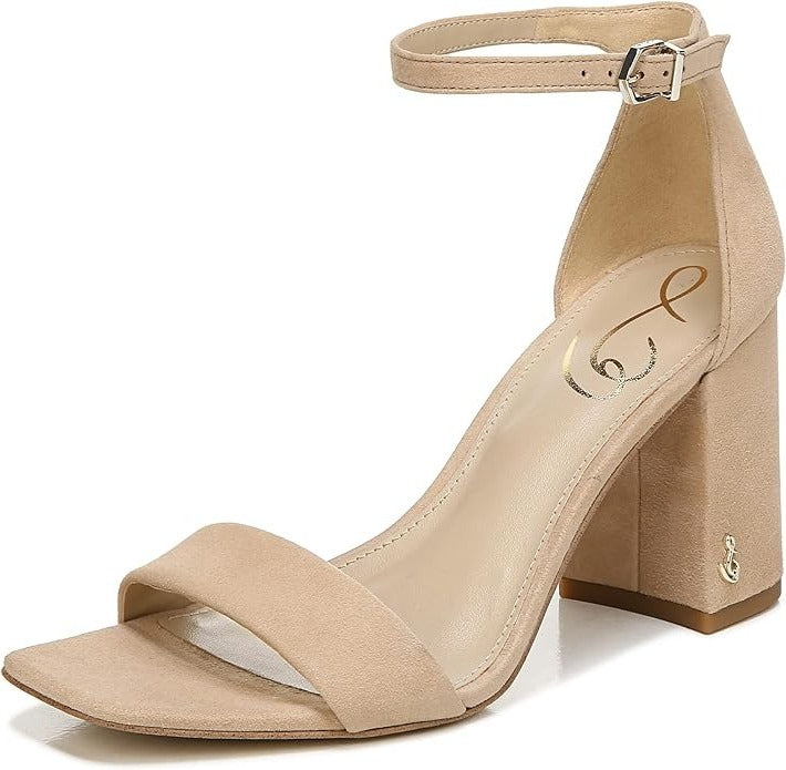 Sam Edelman Daniella Oatmeal Suede Ankle Strap Block Heeled Open Toe Sandals