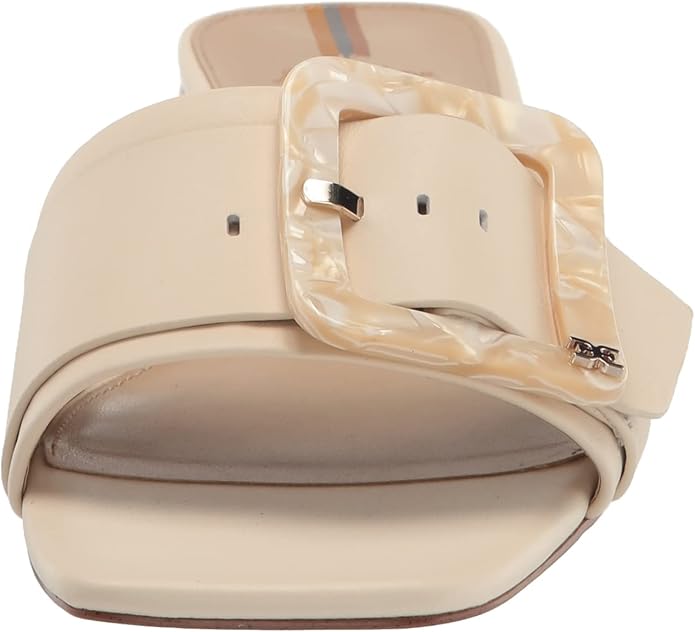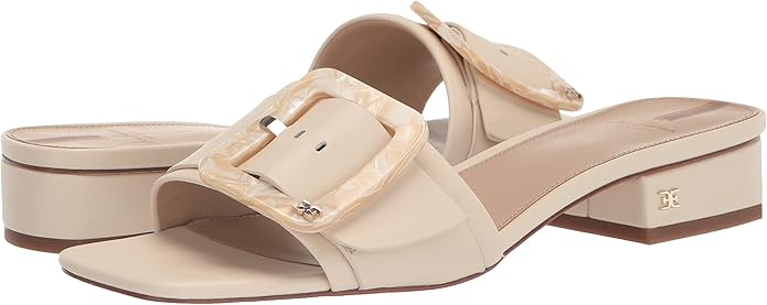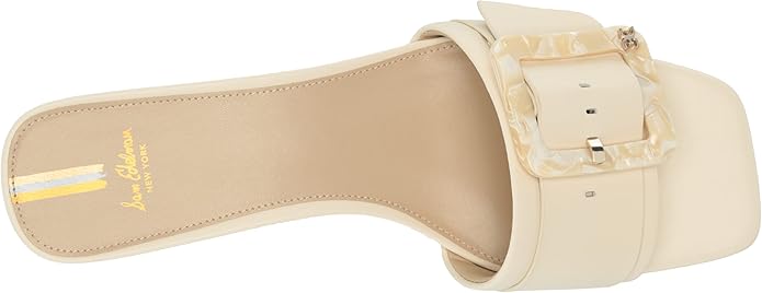 Sam Edelman Deacon Modern Ivory Squared Open Toe Buckle Slides Heeled Sandals