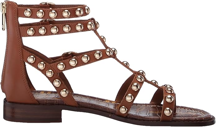 Sam Edelman Estella Rich Cognac Open Toe Studded Gladiator Thong Flat Sandals