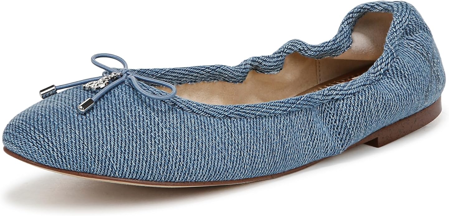 Sam Edelman Felicia Vintage Denim Leather Slip On Rounded Toe Bow Ballet Flats