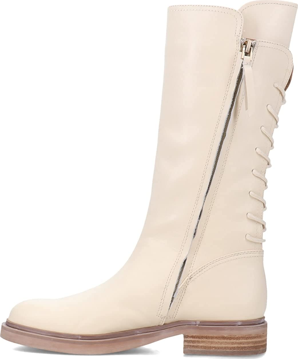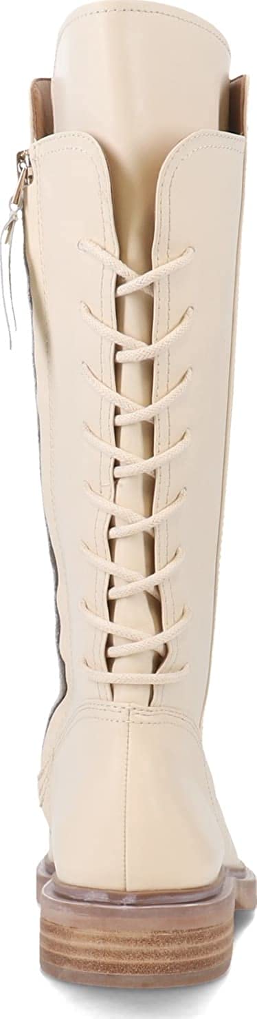 Sam Edelman Franka Ivory Rounded Toe Stacked Heel Knee High Leather Boots