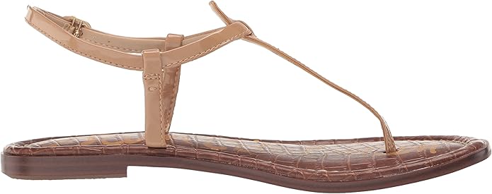 Sam Edelman Gigi Almond Patent Embossed Open Toe Ankle Strap Wide Flats Sandals