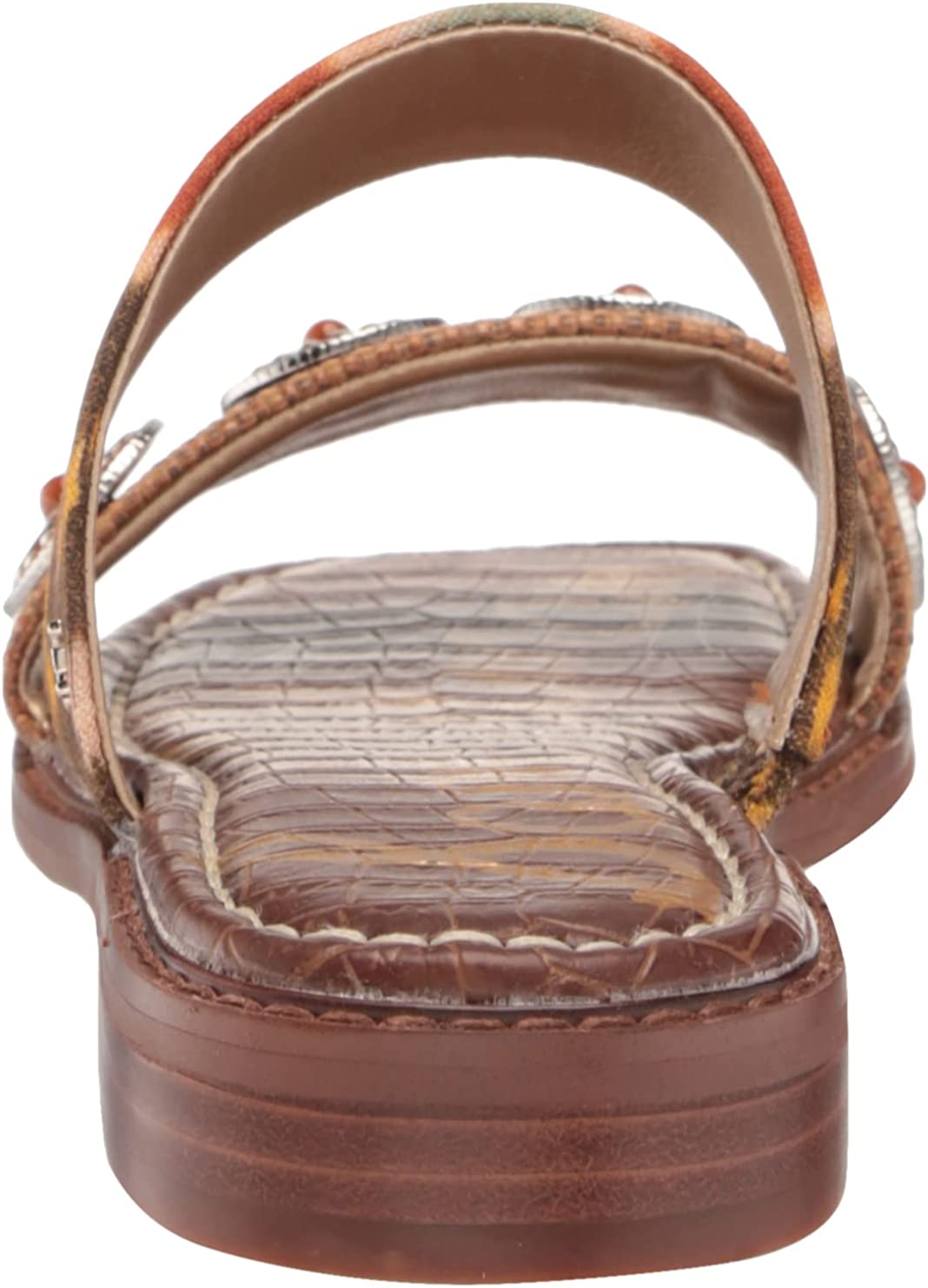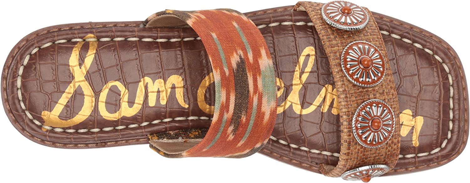 Sam Edelman Hera Sunset Orange/Cuoio Slip On Open Toe Embellished Slides Sandals