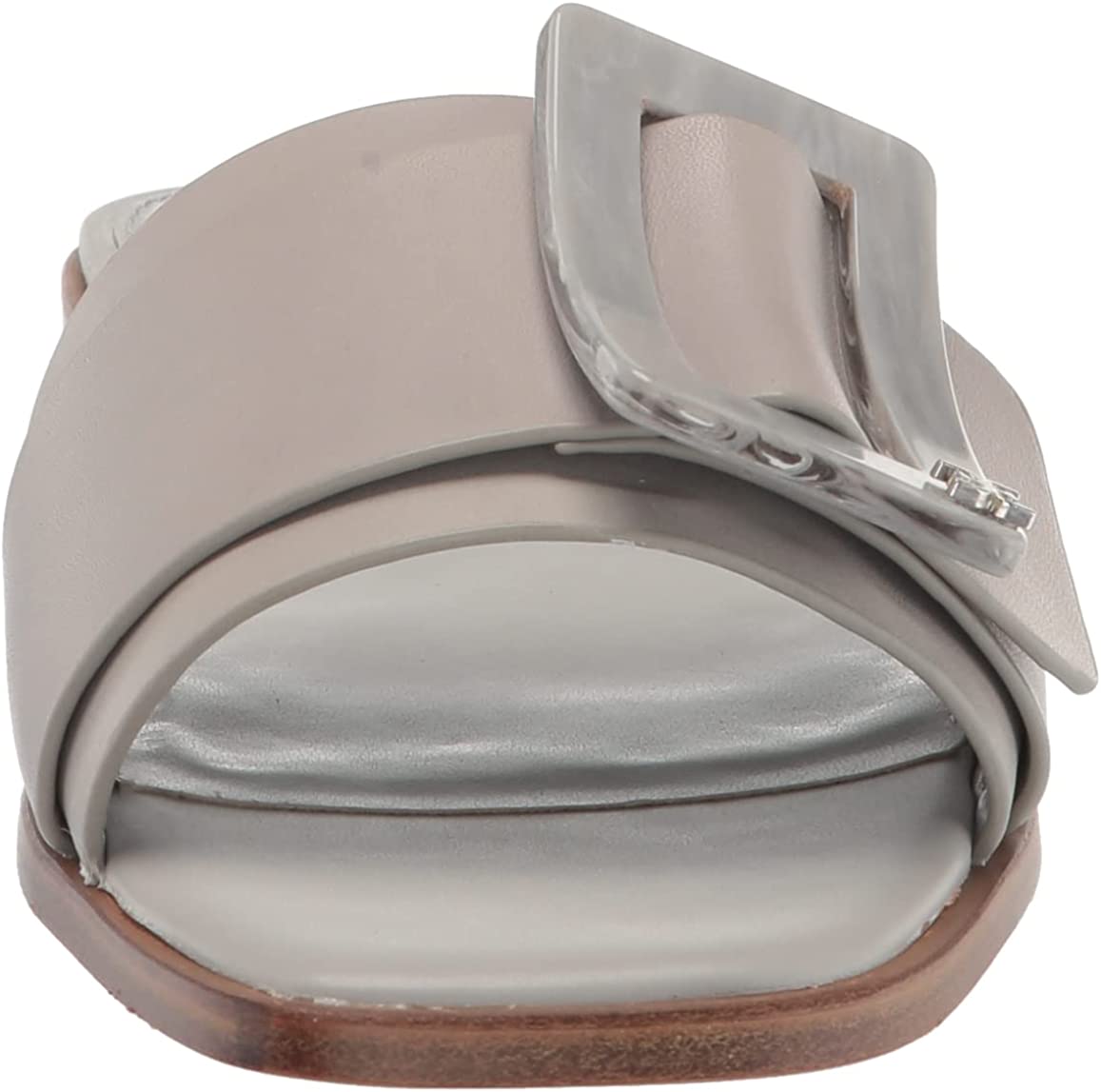 Sam Edelman Inez Pebble Grey Squared Open Toe Slip On Buckle Strap Slide Sandals