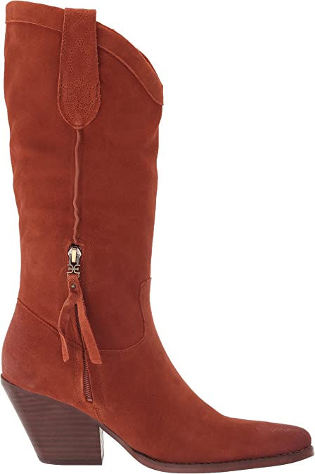 Sam Edelman Jamie Mesa Rust Side Zipper Pointed Toe Block Heel Western Boots
