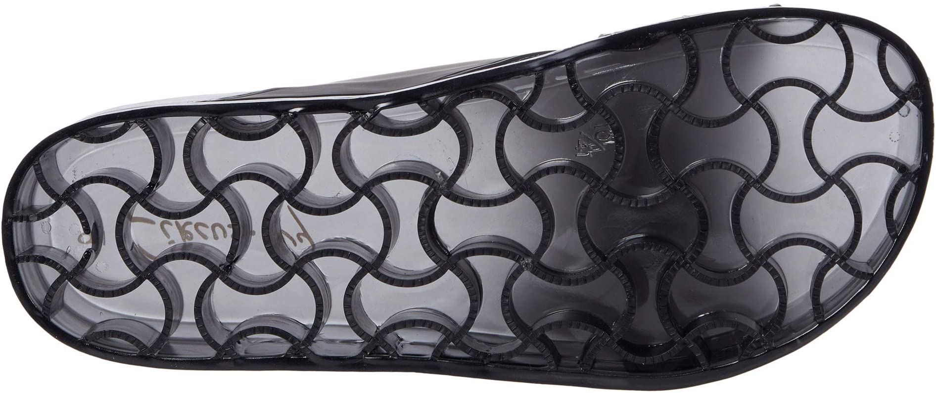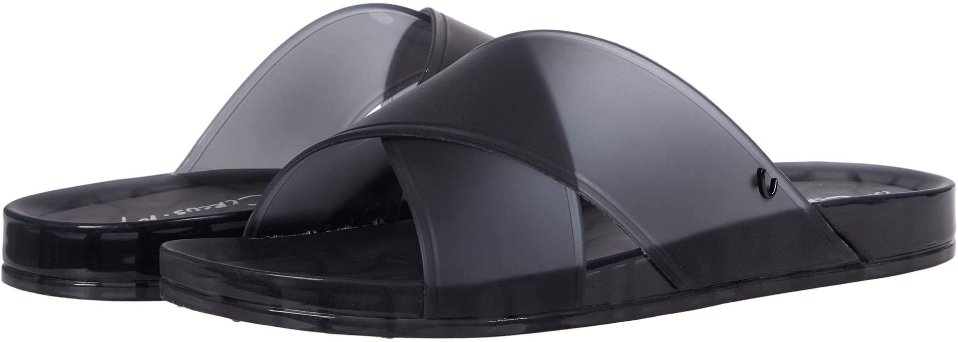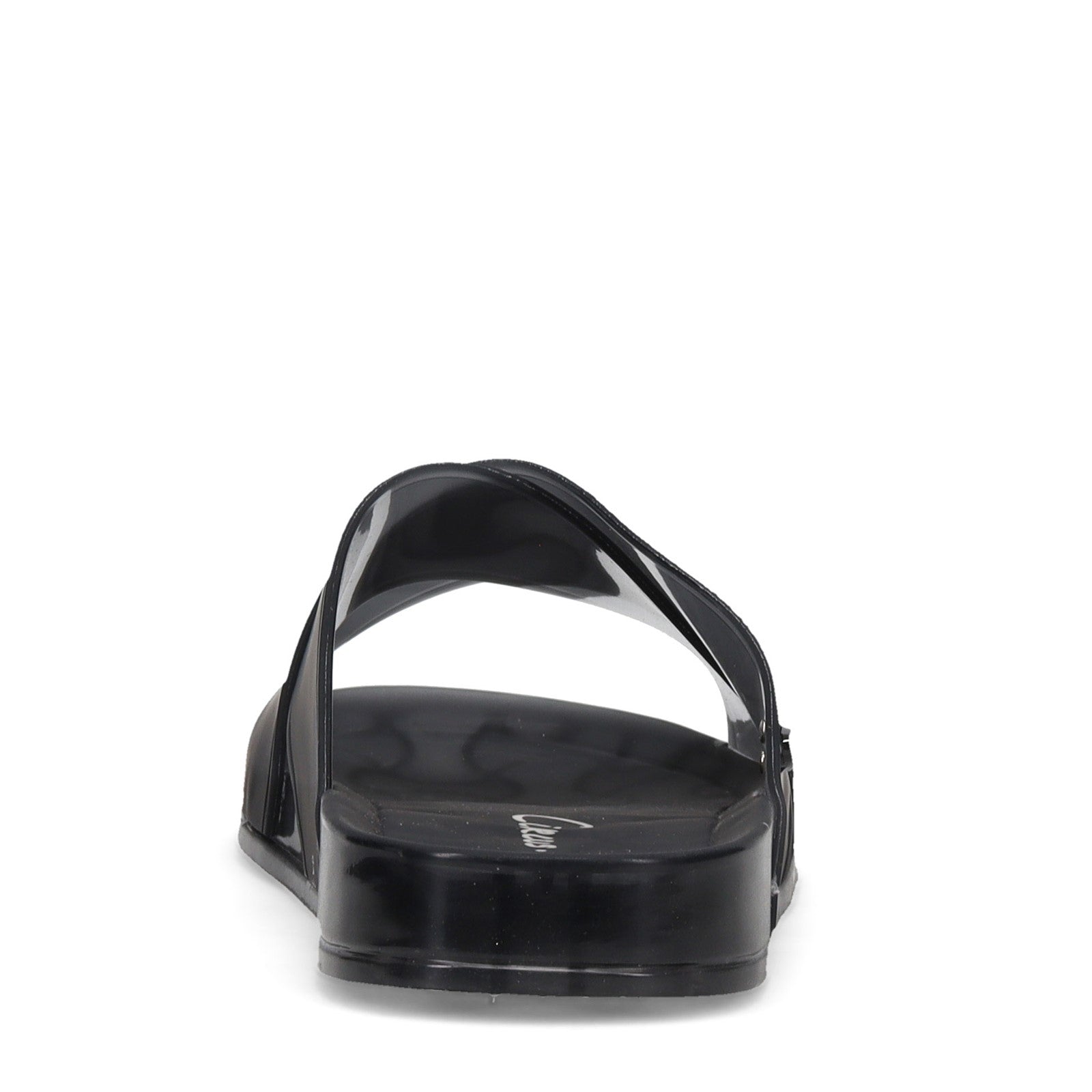 These fun jelly style slides are super comfortable and offer a unique translucent look. You'll want to wear these cute sandals all summer long. Synthetic uppers in a translucent cross strap slide style Smooth synthetic linings Contoured footbed Synthetic outsole