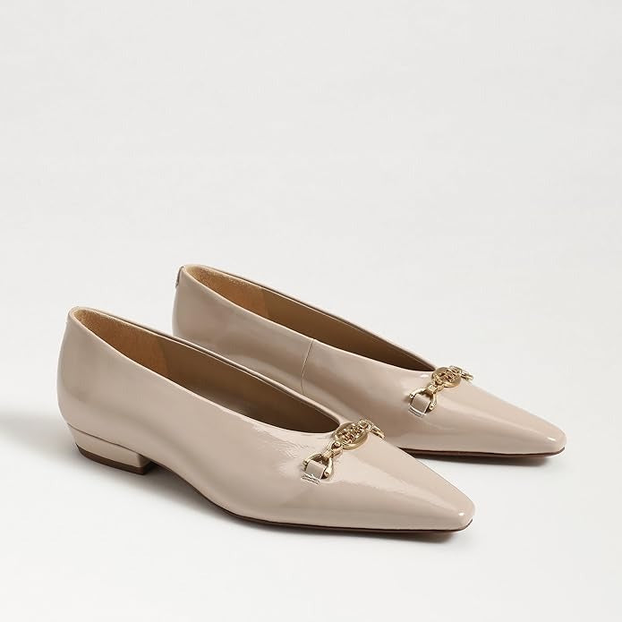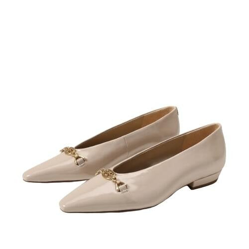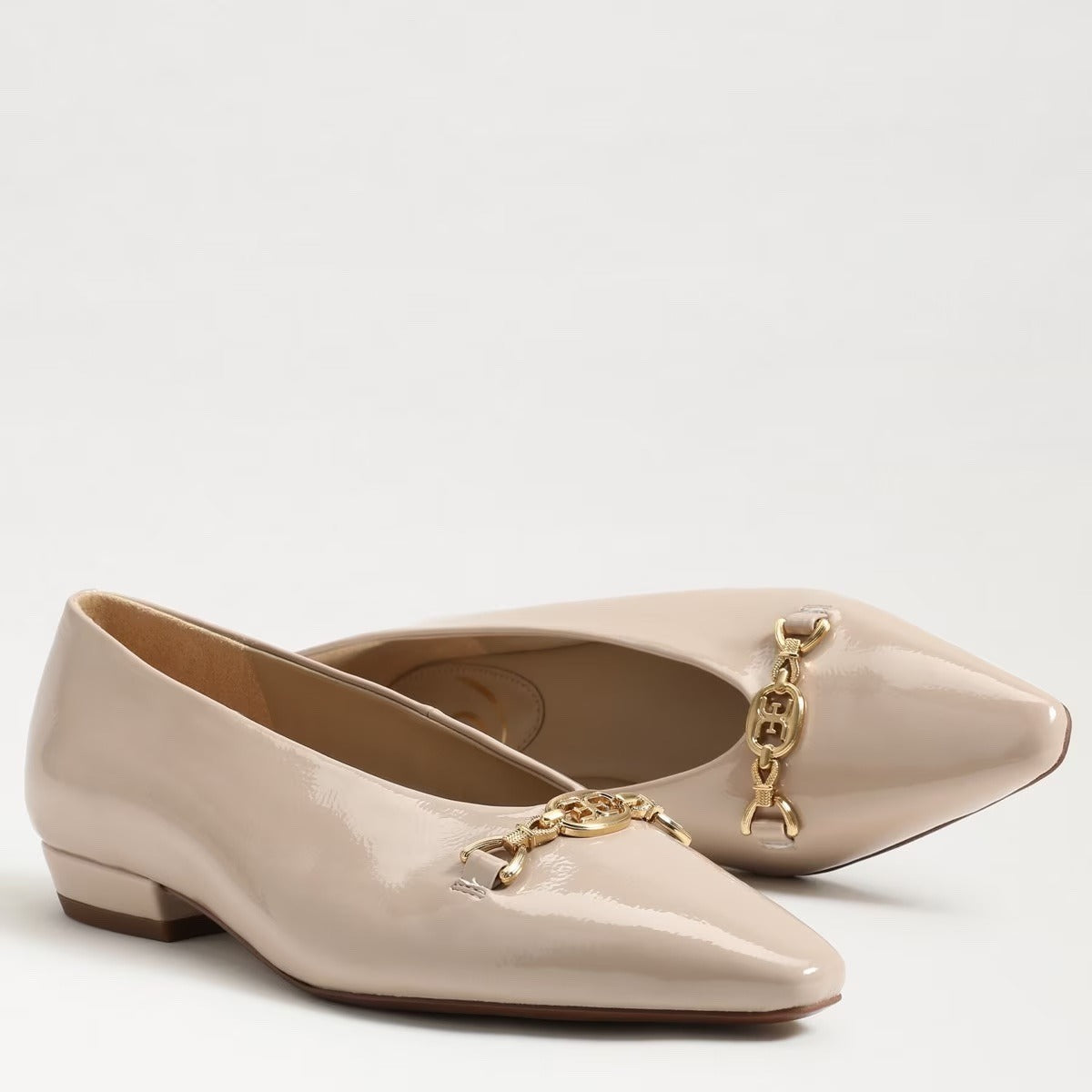 Sam Edelman Jenica Chai Latte Metallic Chain Details Slip On Pointed Toe Flats