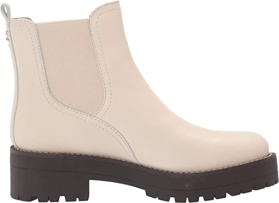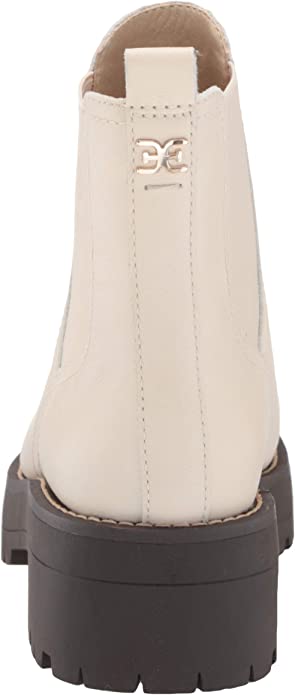 Sam Edelman Justina Modern Ivory Pull On Block Heel Almond Toe Ankle Boots