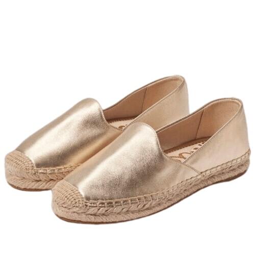 Sam Edelman Kenley Gold Leather Rounded Toe Slip On Espadrilles Classic Flats