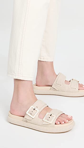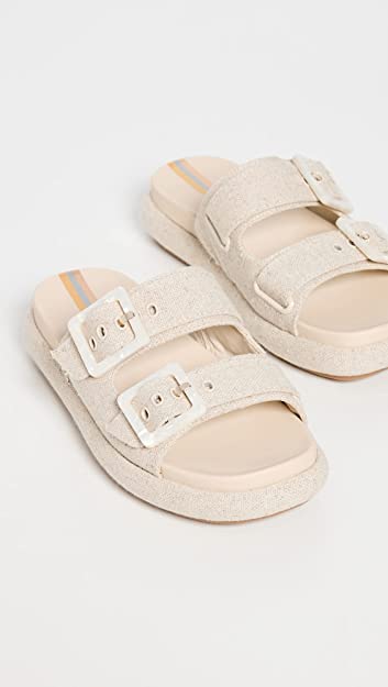 Sam Edelman Kenzie 2 Natural Buckle Straps Slip On Open Toe Platform Slides