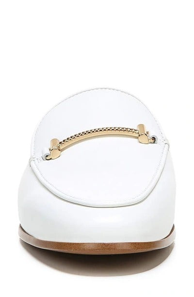 A timeless wardrobe staple, this classic loafer is updated with a backless, low-profile silhouette and finished with a slender gleaming bit at the vamp.