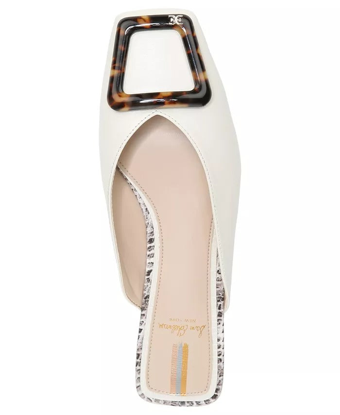 Lavina brings a delicate curve to the traditional mule. Featuring a sleek silhouette and a bold decorative buckle, this is the perfect slide to dress up any look.