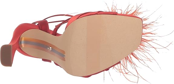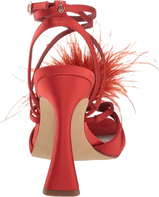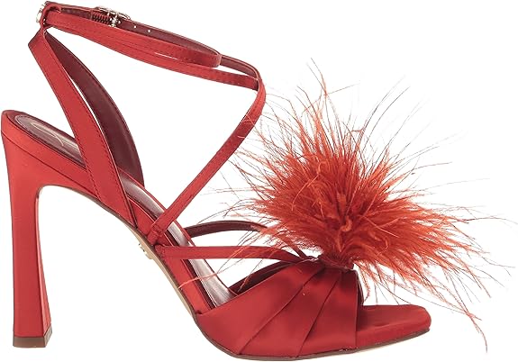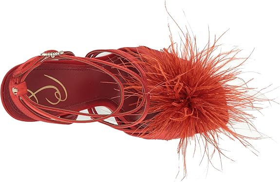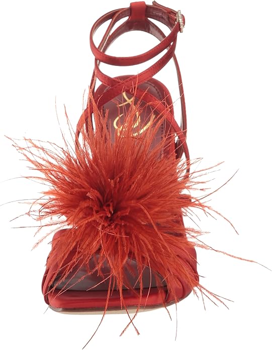Sam Edelman Layton Red Mahogany Ankle Strap Spool Heeled Feather Detailed Sandals